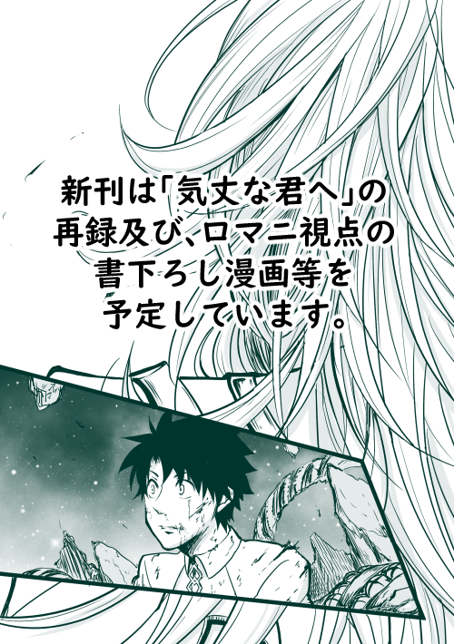 2019/03/30 Category : お知らせ 5/3スパコミに参加します! 5/3のSUPER COMIC CITY 28 Super ROOT 4 to 5 2019に参加します! 当日は【西1イ16b】のスペースにおりますのでよろしくお願いします。 新刊は1年かけてのんびり更新していた漫画「気丈な君へ」を 紙媒体へ再録、ロマニ視点の書下ろし漫画等を予定しています。 のんびりではありましたが根気強く頑張ったので、手元に残しておきたいなと思ったり。 元々落書き漫画だったのでもう少し描きこんだりして編集中です。 原稿頑張ります!